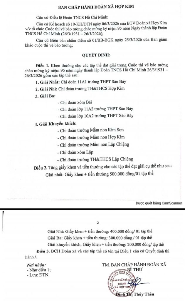 Chào mừng kỷ niệm 95 năm Ngày thành lập Đoàn TNCS Hồ Chí Minh (26/3/1931 – 26/3/2026), Đoàn xã Hợp Kim đã tổ chức cuộc thi viết và trình bày báo tường với sự tham gia của nhiều đơn vị trên địa bàn.