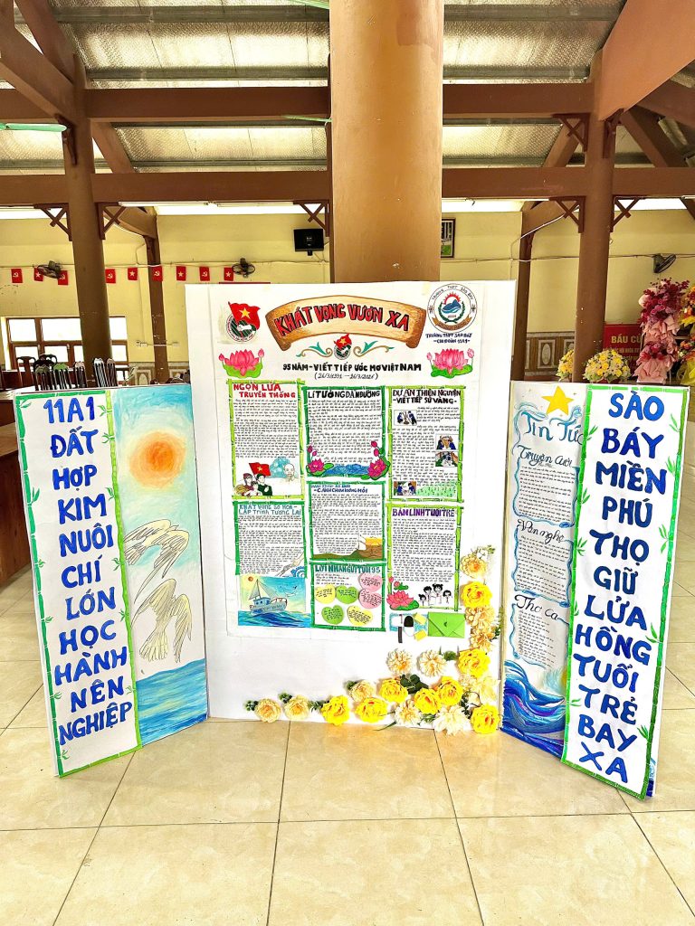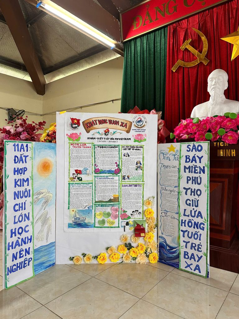 Vượt qua nhiều bài dự thi ấn tượng, Chi đoàn 11A1 – Trường THPT Sào Báy đã xuất sắc giành Giải Nhất với tác phẩm báo tường chủ đề “Khát vọng vươn xa”. Bài dự thi nổi bật với nội dung sâu sắc, bố cục sáng tạo và hình thức trình bày công phu, thể hiện rõ tinh thần tuổi trẻ, lý tưởng sống và khát vọng cống hiến.